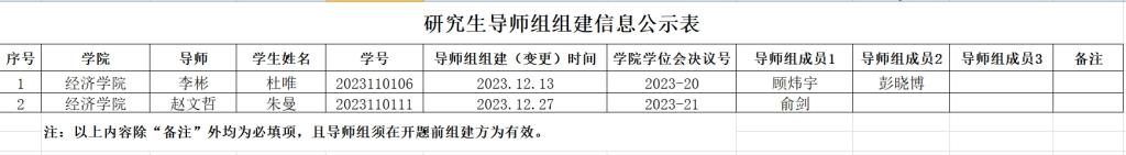二、研究生导师组原则上应在该生学位论文开题前组建,组建后不得随意变更。学院导师组详细名单和具体信息附后,以供相互监督。研究生导师组的日常管理由研究生导师和培养单位共同负责,研究生导师作为研究生培养第一责任人的职责不变。