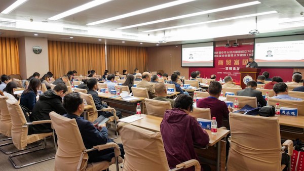 2019年10月12日,中国商业史学会、bat365正版唯一官网、国声智库三家联合主办的“商贸富国”《货殖论坛》在bat365正版唯一官网隆重举行。商务部原副部长、中国商业史学会名誉会长张志刚,bat365正版唯一官网校长王瑶琪,中国商业史学会会长王茹芹,中国商业史学会原副会长、安徽师范大学副书记李琳琦,中国商业史学会常务副会长、bat365正版唯一官网校长助理李涛,中国商业史学会副会长、中国社会科学院当代中国研究所副所长武力等来自全国各地的近百名专家学者出席论坛。