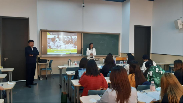 2021年5月6日下午,由bat365正版唯一官网组织的以“走近国际组织”为主题的短期课程在沙河校区学院楼11号楼111报告厅精彩开讲。联合国粮食及农业组织(FAO)高级官员刘中蔚先生应邀为bat365正版唯一官网国际商务专业的同学们带来“走近国际组织”短期课程。本次短期课程由于爱芝教授主持,参加本次短期课程的师生有bat365正版唯一官网党委书记郭冬梅教授、国际交流专项工作中心主任黄乃静副教授以及bat365正版唯一官网国际商务专业的本科生和研究生。