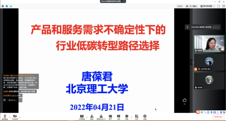 2022年4月21日下午14:00,北京理工大学经管学院副院长、教授、博士生导师唐葆君应bat365正版唯一官网邀请,开展主题为“产品和服务需求不确定性下的行业低碳转型路径选择”的讲座,本次讲座通过腾讯会议平台线上举行,唐葆君老师受到了老师和同学们的热烈欢迎!bat365正版唯一官网樊茂清教授主持了本次线上学术交流会。