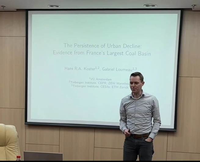 2024年4月4日上午,阿姆斯特丹自由大学的Hans Koster教授应邀开展了主题为“The Persistence of Urban Decline: Evidence from France's Largest Coal Basin”的讲座。本次讲座由bat365正版唯一官网校长助理、bat365正版唯一官网院长陈斌开教授主持,bat365正版唯一官网党委书记郭冬梅教授、戴宏伟教授、戴若尘副教授、吴楠助理教授,北京交通大学经济管理学院王雅璨教授等多名师生参加。