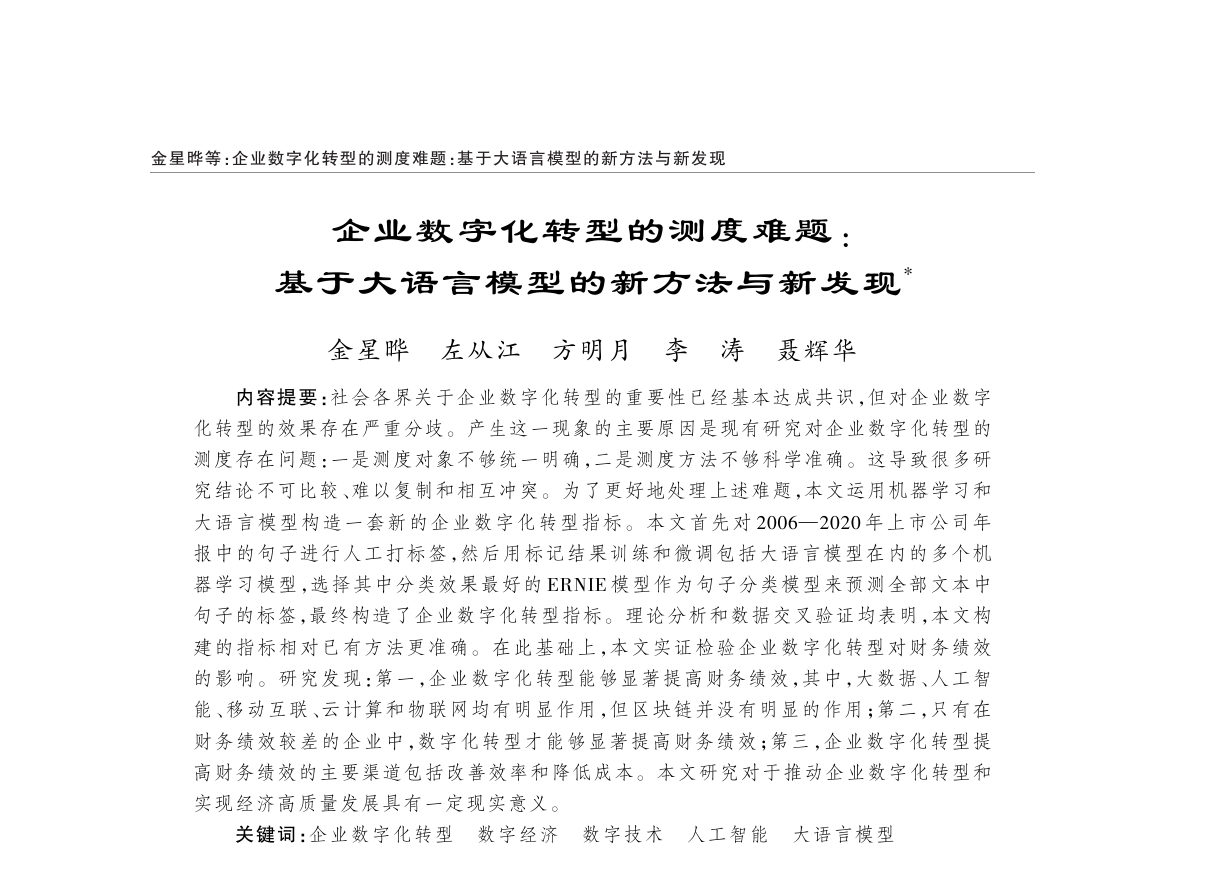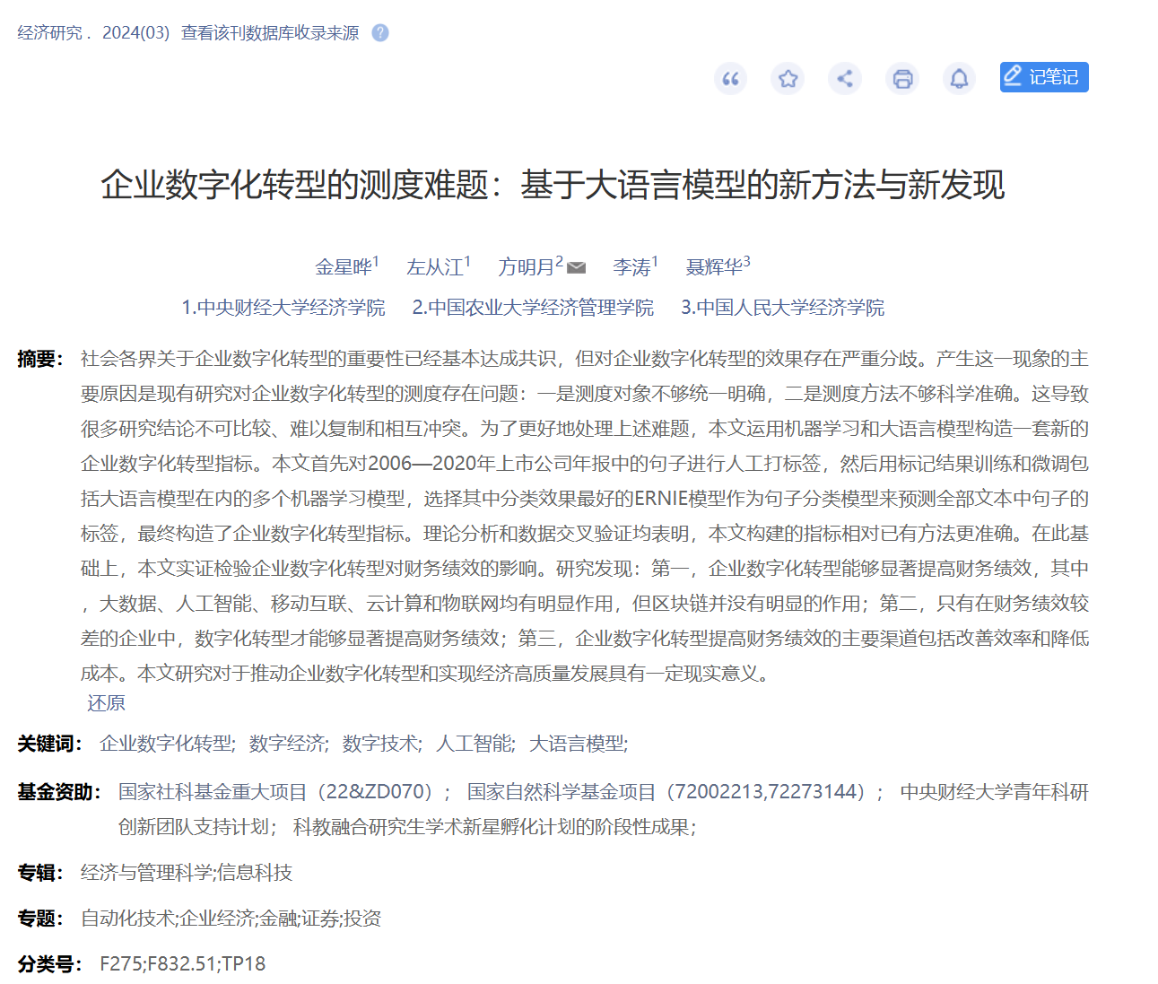学术视点 | bat365金星晔老师、李涛老师和左从江博士生与合作者的论文《企业数字化转型的测度难题:基于大语言模型的新方法与新发现》在《经济研究》刊发