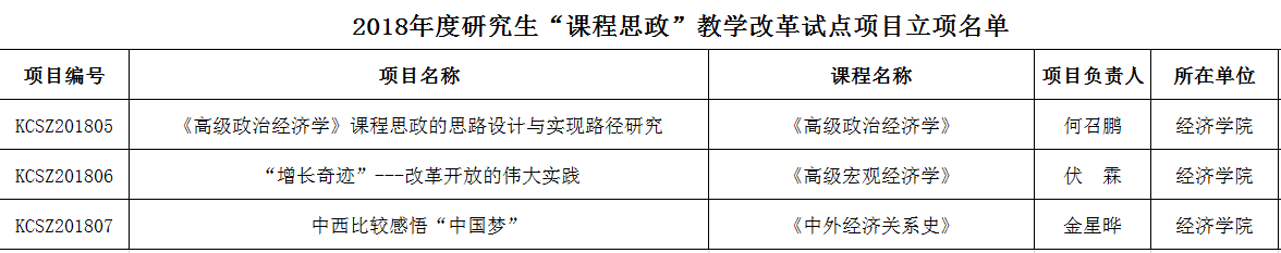 近日,学校研究生院公布了2018年度研究生“课程思政”教学改革试点项目。bat365何召鹏老师申报的“《高级政治经济学》课程思政的思路设计与实现路径研究”、伏霖老师申报的“‘增长奇迹’---改革开放的伟大实践”、金星晔老师申报的“中西比较感悟‘中国梦’”获准立项。