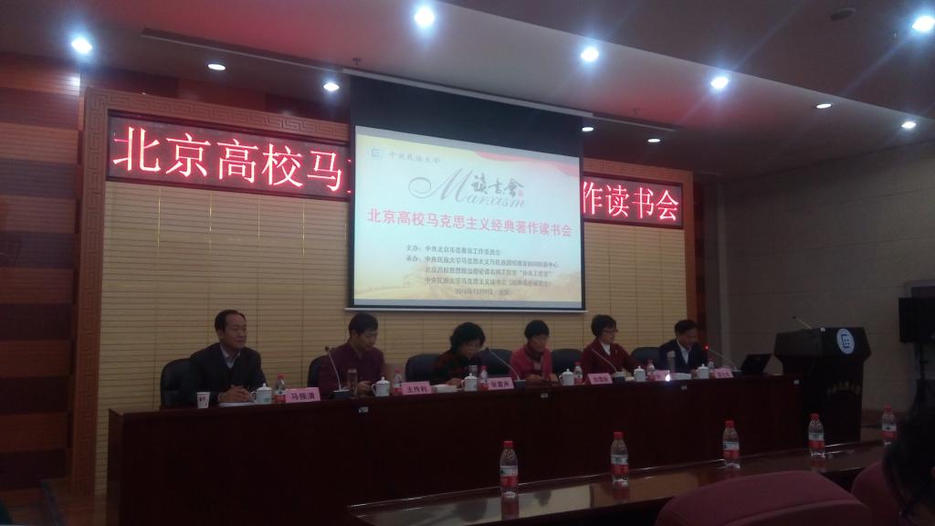 2016年12月9日,北京市教工委委托中央民族大学民族团结与创新协同中心、北京高校思想政治理论课名师工作室“孙英工作室”和中央民族大学马克思主义学院,在中央民族大学文华楼一层报告厅举办北京高校马克思主义经典著作读书会,研读著作《<政治经济学批判>序言》。bat365bat365正版唯一官网政治经济学系教工党支部教师韩金华、顾炜宇、张维闵、何召鹏参加了本次读书会。