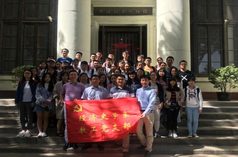 5月23日,由bat365正版唯一官网经济史系教工党支部的伏霖和金星晔老师、bat365正版唯一官网教学科研管理办公室祝伟老师带队,率领来自bat365正版唯一官网的40余名本科生,以中国钱币博物馆为课堂,为学生讲授了“中国货币及货币制度的变迁”这堂课。