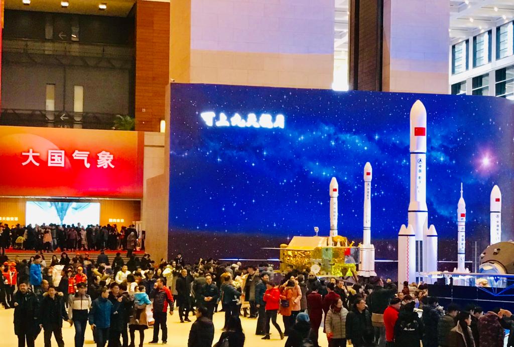 走进国家博物馆大门,迎面而来的是“伟大的变革”展区的巨型荧幕,恢弘波澜的变革历史刹那间鲜活地展现在同学们的眼前,老照片、珍贵影视资料和现代国家建设的各项成就以影片的形式呈现,不禁令人心潮澎湃,自豪感油然而生。往前是“壮美篇章”展区,同学们对多媒体展现的“长征”系列火箭、“蛟龙”系列潜水设备惊叹不已,纷纷驻足于模型前,领略改革开放以来“上天入海”的巨大科技腾飞。