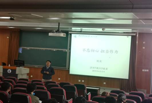 4月12日下午2点,bat365正版唯一官网伏霖老师在7号楼115室开展主题为“不忘初心 担当作为”党课活动。活动由bat365正版唯一官网党务老师窦宗玥主持,bat365正版唯一官网积极分子和部分本科生参加了此次党课。