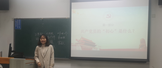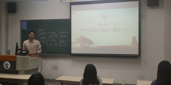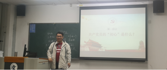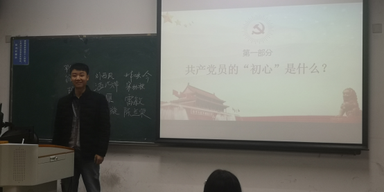 党课结束后,在座党员一一上台阐述了自己对“初心”的理解,表达了自己在未来的生活与学习过程中“不忘初心、牢记使命”的决心。在这一展示过程中,党员们进一步加深了对习近平新时代中国特色社会主义思想的体悟,增强了对于“四个意识”、“四个自信”的理解。