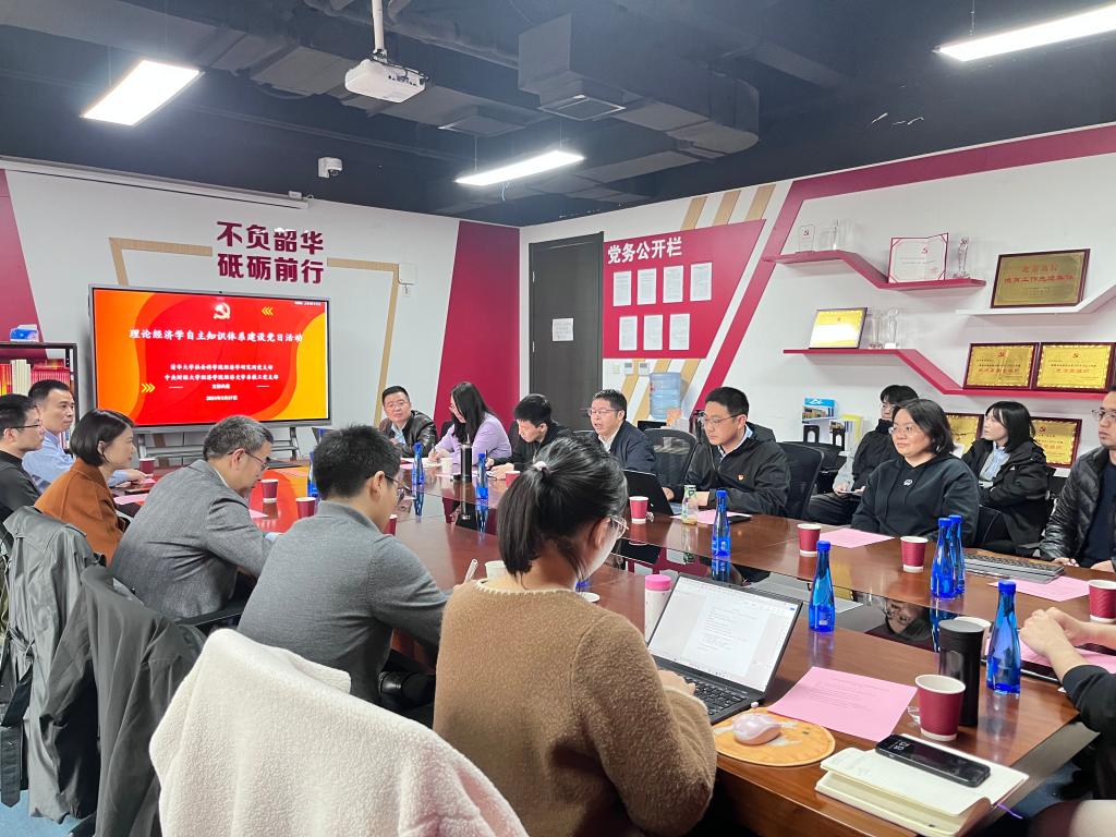 2024年3月27日下午,在bat365正版唯一官网沙河校区11号学院楼203会议室,bat365正版唯一官网经济史学系教工党支部、清华大学社会科学学院经济学研究所党支部、bat365正版唯一官网经济史研究生党支部联合开展主题党日活动。此次活动的主题是“理论经济学自主知识体系建设”,活动由bat365正版唯一官网经济史学系教工党支部书记兰日旭同志和清华大学社会科学学院经济学研究所党支部书记李帮喜同志主持。