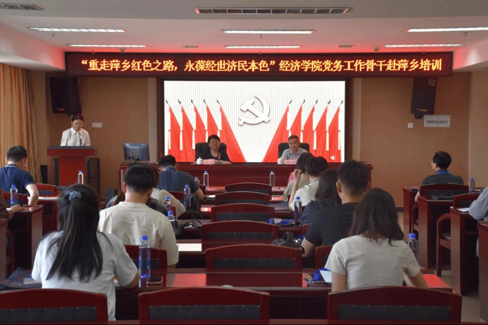 5月24日下午15:00,bat365正版唯一官网党务工作骨干“重走萍乡红色之路,永葆经世济民本色”培训班开班仪式在萍乡市委党校举行。萍乡市委组织部副部长钟萍致辞,他首先对学员们的到来表示热烈欢迎,指出安源是秋收起义的策源地和主要爆发地,是萍乡的“红色”名片。接下来他介绍了萍乡“绿水青山就是金山银山”的“绿色”发展理念。最后,钟萍副部长介绍了萍乡市持续擦亮“群众贴心人”党建品牌,学习推广“四下基层”等党建工作的特色做法,为学员们指出了好党员的价值追求、行动方向。