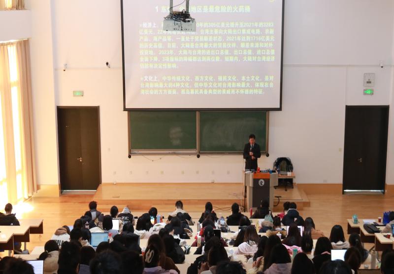 包明教授从宏观视角切入,围绕我国国家安全的战略背景与军事安全环境展开论述。他指出,当前国际形势风云变幻,国家安全面临的风险与挑战具有复杂性、多样性和突发性。他通过生动的案例、详实的数据和切身的经历,逐步剖析了“东忧、西乱、南急、北和”四个方向的安全态势,并从历史、现实和未来的维度阐释了国家安全战略的科学布局。在谈到国家安全教育的重要性时,包教授强调,高校作为培养爱国主义精神和增强国家认同感的重要阵地,肩负着不可替代的责任,广大师生作为国家安全意识传播的核心力量,必须深刻理解总体国家安全观的战略意义,切实增强忧患意识与责任意识,携手筑牢国家安全的坚固屏障。