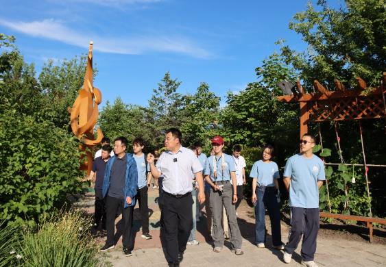 当天下午,调研团队前往双兴镇双利村文旅小镇进行调研,小镇负责人带领团队成员参观生态菜园、“乡愁记忆”主题展区、特色民宿区等文旅建设项目,他讲到小镇既保留了当地传统民俗文化特色,又引入夏季啤酒节等新型活动,通过创新形式带动了区域经济发展。