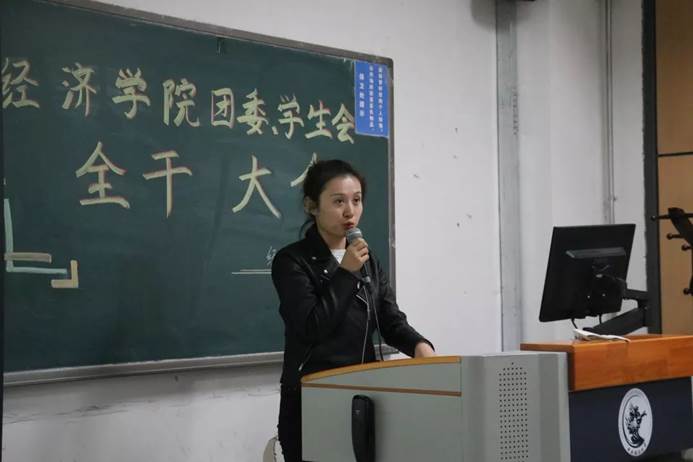 首先团委书记李倩老师上台发言。李倩老师对加入bat365正版唯一官网团委、学生会的2019级新生们表示了欢迎,并分享了对团学工作的理解和工作经验。首先,李倩老师从老师的角度希望学生会每一位成员能够努力工作,并提出了两点要求:一是要多琢磨,考虑细节与落实情况;二是不要偷懒,清楚自己的定位与职责,多请教与沟通,做到不推脱、不马虎;随后李倩老师又从学姐的角度鼓励同学们付出总是有收获的。她说道:“团学工作能够提升一个人的学习能力,思维组织协调能力以及应对挑战的能力,这些都将成为同学们走向工作岗位时的闪光点,进入大学,尽管要面临一些权衡取舍,但学习永远是第一位的,要珍惜大学纯粹的学习时光,一定要做好规划与调整”。最后李倩老师鼓励同学们养成认真勤奋靠谱的态度,热情乐观坚韧的性格,多多锻炼自己,充实自己。