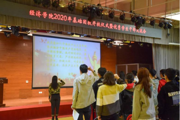 且将新火试新茶,当我们把镜头转向20级的新团员们,他们早就整装待发,时刻准备承担责任,尽一份力,发一份光。团员代表张馨格代表全体团员郑重承诺:将从思想上武装自己,视野上开阔自己,行为上要求自己。以团员与经济学子的双重身份号召大家怀经世之心,为济民之行,立安天下之言。