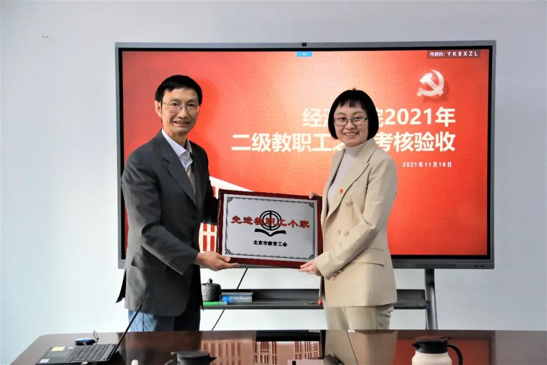 校工会常务副主席贺小海向bat365正版唯一官网授牌“北京市先进教职工小家”