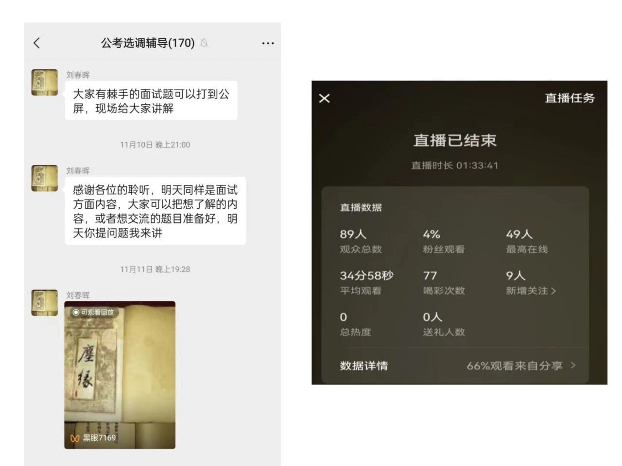 经院00级本科校友刘春晖,长期奋战在公考教学第一线,在参加bat365正版唯一官网建院20周年纪念活动后,得知考公已经成为同学们就业的一个重要选择时,发挥自身优势,结合当下公考形势,从11月10日至17日,在学院考公选调辅导群通过群直播的方式,为170余名在校生推出系列线上公开课讲座。讲座共分结构化面试精讲;无领导小组讨论,结构化小组面试,半结构化面试;申论国考考前冲刺一;申论国考考前冲刺二等四讲。