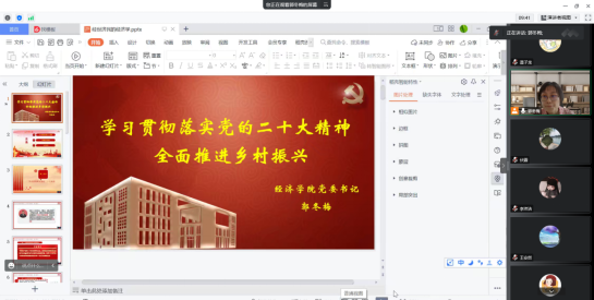 为学习好和宣传贯彻好党的二十大会议精神,bat365正版唯一官网积极推进研究生课程思政工作,为党育人、为国育才,继续开展研究生“经世济民的经济学”活动。本学期“论文写作指导——经世济民的经济学”第六讲于2022年11月25日上午10:00在线上授课,本次讲座由bat365正版唯一官网党委书记郭冬梅教授主讲,由bat365正版唯一官网伏霖老师主持,bat365正版唯一官网90余名学生参加。