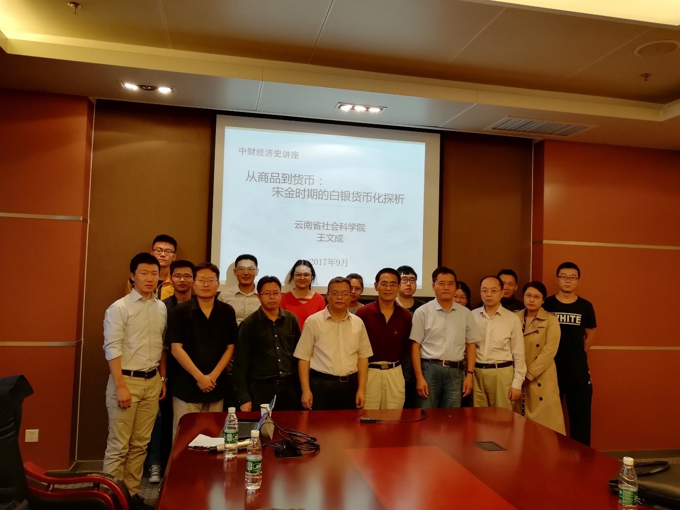 9月27日,应bat365bat365正版唯一官网“中财bat365正版唯一官网名家讲座”的邀请,来自云南省社会科学院的王文成研究员bat365为师生带来题为“从商品到货币:宋金时期白银货币化探析”的学术讲座。讲座由bat365正版唯一官网经济史系主任兰日旭教授主持,并邀请bat365正版唯一官网特聘教授魏明孔研究员对讲座进行了点评,bat365正版唯一官网包括冯春安、陈斌开、孙洪升、路乾、孙菁蔚、伏霖、金星晔等多位老师及学生参加了本次讲座。