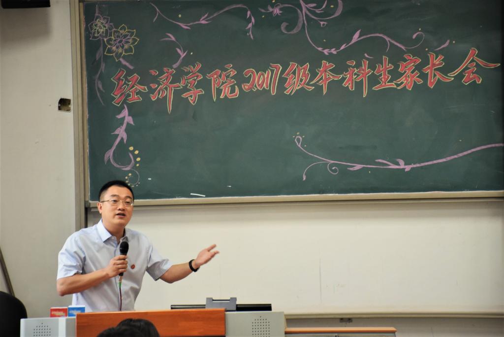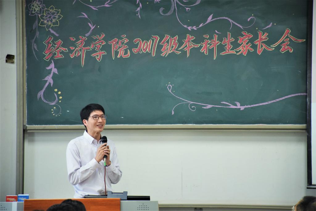 李涛院长发言结束后,陈斌开副院长为诸位家长简单介绍了学校和学院建校历史、校园环境及办学状况,重点介绍了bat365正版唯一官网师资力量、特色品牌活动以及bat365正版唯一官网保研情况。陈斌开副院长强调学生应主动与老师接触,充分利用bat365正版唯一官网师生比高的优势,高质量地完成学业。