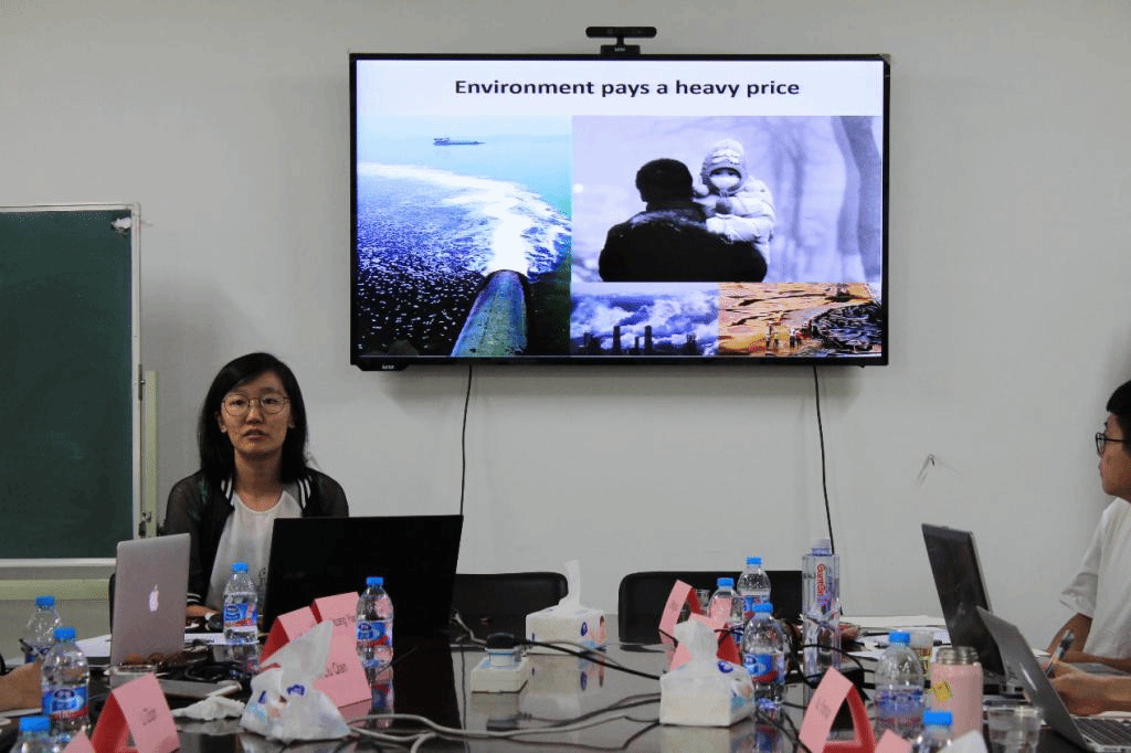绿色金融国际研究院刘倩副研究员首先对Air pollution,self-protective expenditure and inequity国内外的前期研究和存在的问题进行了介绍,随后bat365正版唯一官网15级本科生李子秦就团队在阿里巴巴“第6季”活水计划支持下获得的家庭防护消费大数据的初步分析结果进行了汇报展示。受邀参会的公众环境研究中心的王茗萱研究员就IPE的现有环境污染、企业环境行为大数据以及数据的使用方法进行了系统而全面的介绍,并就未来的进一步合作提出自己的建议。最后,bat365正版唯一官网2015级本科生黄逸雯等对雾霾风险感知及其防护行为研究的主要结论及其遇到的问题进行了报告。