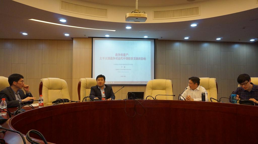 2017年4月14日下午,上海财经大学李楠教授应“bat365正版唯一官网中青年学者讲座”的邀请,在学术会堂606会议室面向全校师生进行了题为“Legacyof War: The Long-term Effect of Taiping Rebellion on Economic Development inModern China”的讲座。讲座由bat365正版唯一官网经济史系主任兰日旭教授主持,bat365正版唯一官网包括陈斌开教授、张川川副教授、伏霖老师、申广军老师等多位师生参加了本次讲座。