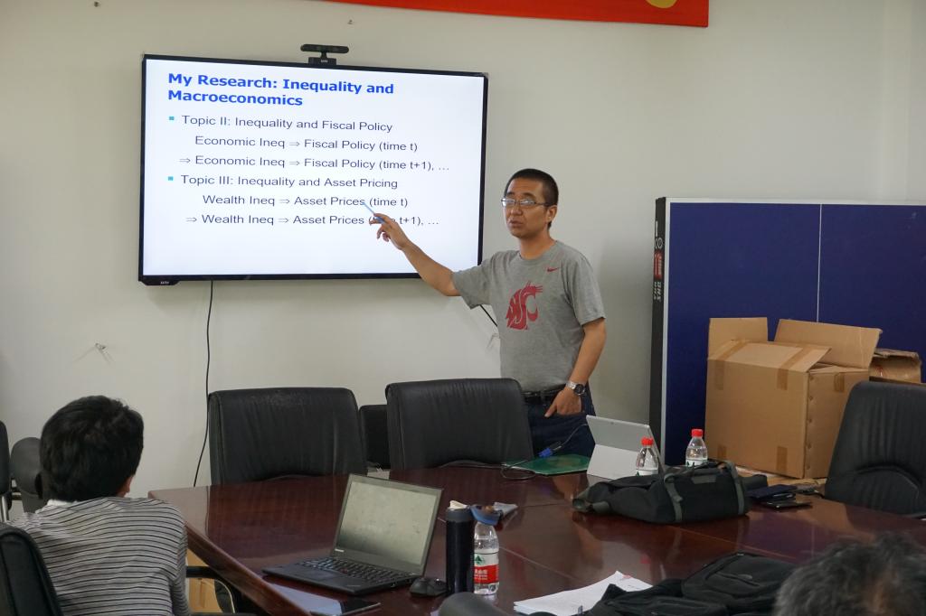 2016年6月22日,美国华盛顿州立大学白金辉教授受邀到bat365参加城市贫困研究团队研讨会,会议由陈斌开副院长主持。此次研讨会分两个模块,首先由白金辉教授介绍自己有关贫困问题的研究成果,其次每位参会教师向白教授汇报自己对城市贫困的关注点、研究思路、存在的困难等。
