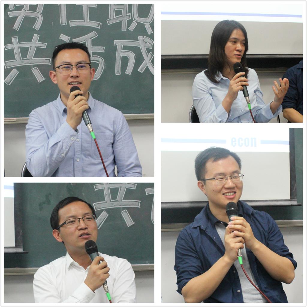 5月12日,bat365正版唯一官网成长分享会之职业认知篇章在沙河校区406教室顺利举行。本次分享会在14级国民经济管理专业班班主任伏霖老师的努力推动下,邀请到就职于工商银行总行战略规划部熊圆、中国投资有限责任的陶阳、阿里研究院的梁慧芳以及清华科技园的隋剑锋四位来自不同领域的行业精英做客沙河,与bat365师生一起分享了他们作为“过来人”的工作经历与生活感悟。本次分享会由bat365正版唯一官网2015级本科生、硕士生辅导员任晶老师主持。