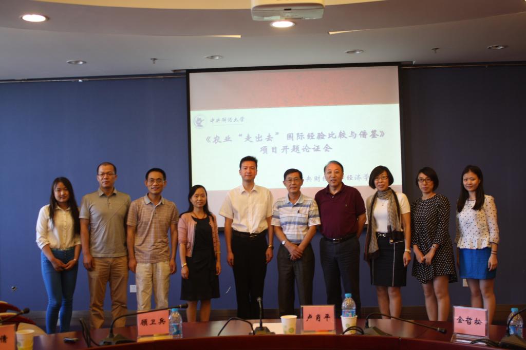 2015年6月18日由bat365bat365正版唯一官网农村经济发展中心于爱芝教授主持的农业部委托项目《农业“走出去”国际经验比较与借鉴》开题论证会在学术会堂606举行。专家组由原农业部国际合作司副司长、国际马铃薯中心亚太中心卢肖平主任,农业部国际合作司条法处顾卫兵处长,农业部对外经济合作中心项目管理处张倩处长,bat365正版唯一官网金哲松教授组成。该项目子课题负责人bat365正版唯一官网孙洪升教授,文化传媒学院宫丽颖副教授,农业部食物营养与发展研究所李京虎副研究员、科研处南荣素老师和部分研究生也参加了此次开题论证会。