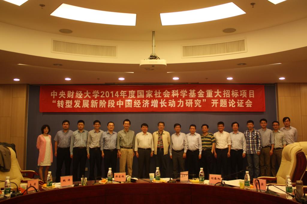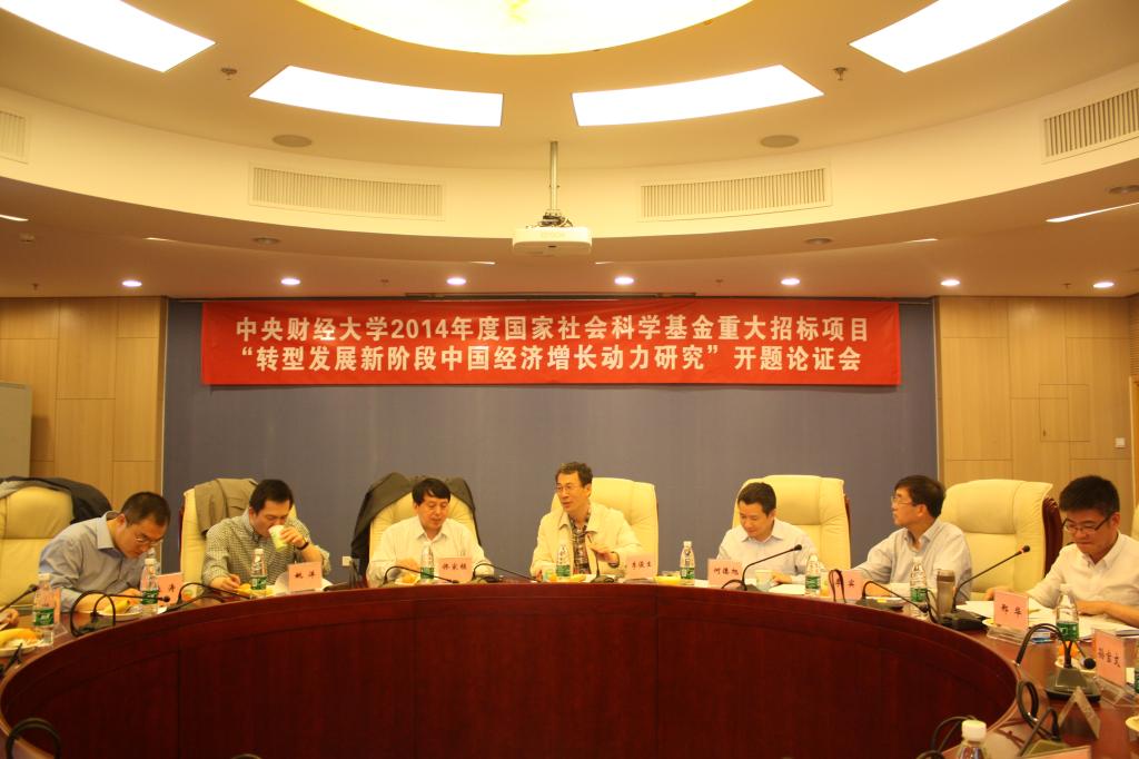 2015年4月29日,由bat365正版唯一官网陈斌开教授主持的2014年度国家社科基金重大招标项目《转型发展新阶段中国经济增长动力研究》开题论证会在学术会堂606举行。专家组由南开大学副校长、南开大学WTO研究中心主任佟家栋教授;中国社会科学院金融研究所党委书记、副所长何德旭教授;北京大学国家发展研究院院长、中国经济研究中心主任姚洋教授;北京师范大学经济与工商管理学院特聘教授,北京师范大学中国收入分配研究院执行院长李实教授组成。bat365正版唯一官网副校长李俊生教授、互联网经济研究院院长孙宝文教授、bat365正版唯一官网院长李涛教授和课题组相关成员及部分师生参加了本次论证会。会议由科研处副处长邢华博士主持。