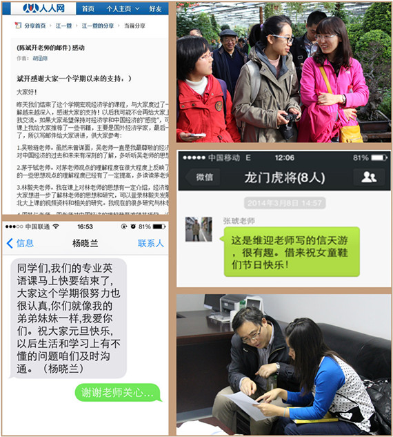 师爱如山,厚重坚定;师爱如海,浩瀚深沉;师爱如雨,润泽无隙。校园里每一处、每一刻都在上演着春风化雨般的bat365正版唯一官网师生情:赵丽芬副校长在繁忙工作中还对学生的论文进行逐字逐句的修改,“一次次温和的笑容、暖心的话语、谆谆的教诲都化作我脑中的智慧,胸中的热血,行为的规范”;齐兰老师时时牵挂学生,在去英国参加学术研讨会忙碌的途中,也不忘给学生送上新年祝福;总是嘱咐学生“多喝水”“别着凉”、出差也不忘给“孩子们”带点心的韩金华老师,让学生感觉在北京有了亲人,不再感到孤单;博学儒雅的金哲松老师也会在酷暑中为新生扛行李、灯下为学生修改论文;精心设置授课内容、神神秘秘拿出一个长筒袜,为回答问题学生送上圣诞节礼物的戴宏伟老师;“经济学是个很好玩的东西,会越想越有意思,要重点把握的是经济学的思想”,乐在经济学中的李彬老师感染着每一名学生;而如母亲般亲切的刘滨老师总是全身心解决学生成长道路中遇到的每一个困惑……他们爱如母、严如父,严慈相济,倾心育人,用温暖如春的关爱给予了学生奋发向上的力量。