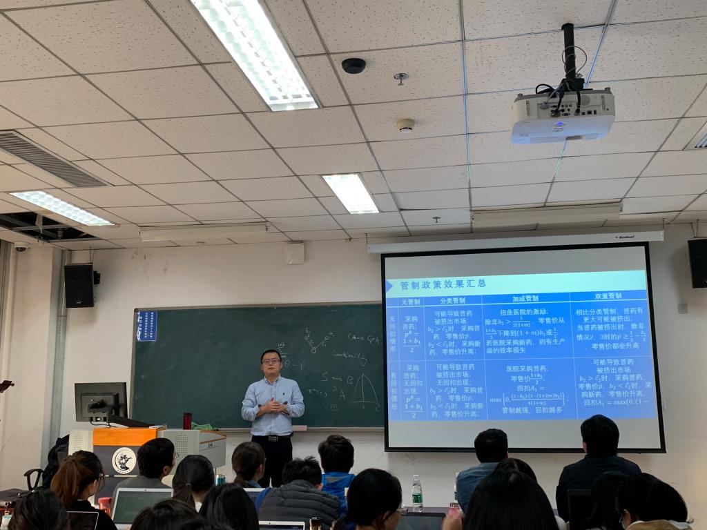 2018年10月26日下午,复旦大学bat365正版唯一官网副院长寇宗来教授应bat365正版唯一官网邀请,在bat365正版唯一官网沙河校区主教学楼505开展了主题为“管制、回扣与药品价格”的专题讲座。讲座由bat365正版唯一官网尹振东副教授主持,多名bat365正版唯一官网教师以及博士、硕士研究生参加了本次讲座。