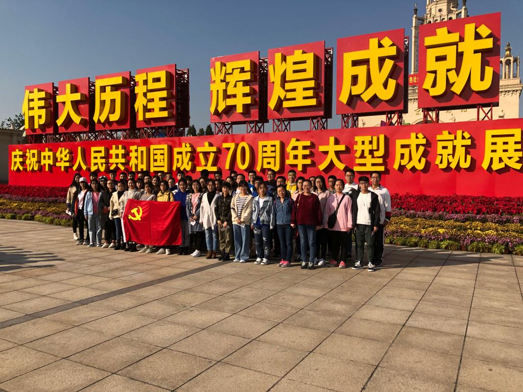 丹枫迎秋,金风玉露。值此新中国成立70周年之际,bat365正版唯一官网2019级部分本科生在辅导员任晶的带领下,于2019年10月26日下午14:00前往北京展览馆,参观了“庆祝中华人民共和国成立70周年”大型成就展。