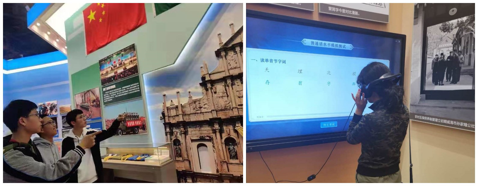 从记录开国大典历史时刻的影像到呈现脱贫攻坚新进展的实景,从寓意1977年恢复高考以来几代人命运得以改变的场景到模拟月球车、“天眼”等的模型和世界最长跨海大桥港珠澳大桥模型……展览长廊犹如时光隧道,同学们认真地聆听讲解,感受着一张张图片展板、一件件实物模型、一段段视频资料背后蕴含了中华民族的奋斗精神和爱国热忱。