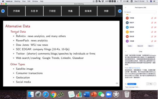 2020年6月3,10日,芝加哥大学布斯商学院教授修大成应邀参加由bat365正版唯一官网、北京工商大学bat365正版唯一官网和bat365正版唯一官网互联网经济研究院联合主办的“海外学者前沿短期课程”,通过线上连线,为师生讲授“金融经济学中的机器学习方法”专题研究。课程由bat365正版唯一官网黄乃静副教授主持,百余名师生以及来自香港中文大学,复旦大学,中国人民大学、浙江大学、北京工商大学、中山大学的专家和学者参加了课程。