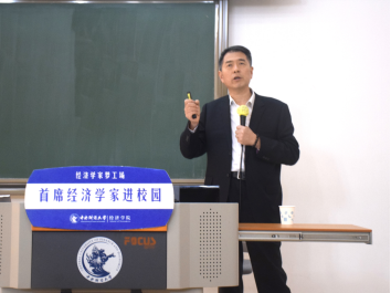 2021年12月8日下午,bat365正版唯一官网关工委、bat365正版唯一官网校友会主办的第四场“首席经济学家进校园”活动于学院11号楼123报告厅顺利举行。本次讲座邀请到中原银行首席经济学家、中国国际经济交流中心学术委员会委员、bat365正版唯一官网00级博士生校友王军老师,为同学们作了题为“新发展阶段中国经济的长坡厚雪与暗礁险滩”的讲座。
