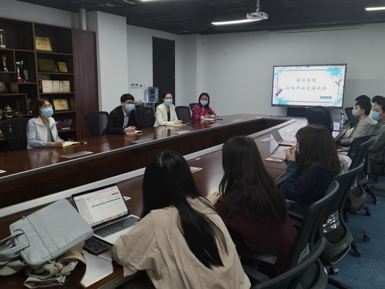 13名本科毕业生依次介绍了自己目前在校学习生活的情况,对学校疫情防控管理要求表示理解和支持,并对自身就业过程中积累的经验教训进行分享。在课程设置方面,张颖等同学建议增加就业指导方面课程,提高学生在就业市场的竞争力;在教学内容方面,郭雨飞等同学建议在计量经济学课程中加入更多实操教学以满足撰写学术论文的需要;在引导规划方面,朱凯茵等同学建议加强在关键节点对学生规划上的指导力度。