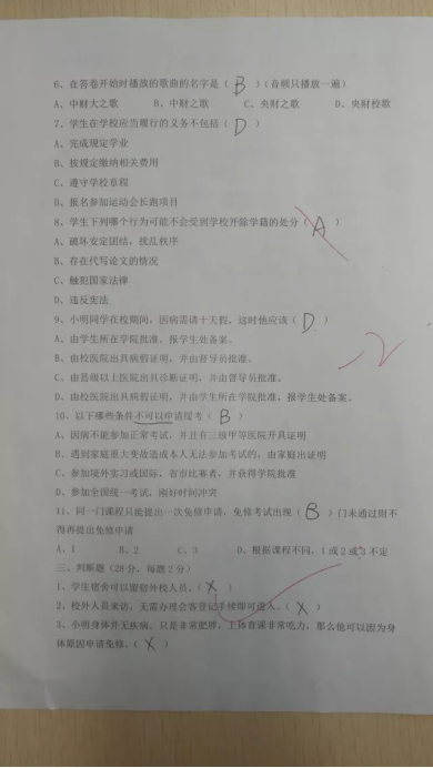 俗话说,无规矩不成方圆,新生进入学校学习,就要遵守学校的校纪校规。在新生阶段认真进行校纪校规教育,对于未来学生管理大有裨益。自新生入学后,学院领导高度重视,要求辅导员深入开展校纪校规教育,做到学习规则、遵守规则。辅导员根据教育部41号令、《bat365正版唯一官网学生管理规定》《学生手册》等文件,举办了bat365正版唯一官网17级新生学生管理知识竞赛,以试卷的形式,将上述文件中的知识要点杂糅到试题当中,以客观题、名词解释、简答题、论述题、计算题五种题型编制试卷。通过考试,既考察了学生对于相关管理办法的熟知程度,也考察了掌握和应用管理办法的水平。