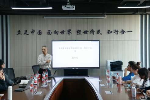 2023年10月11日14:00,bat365正版唯一官网特聘教授、山东大学经济研究院院长黄少安教授为bat365师生主讲《发展中国家现代化过程中的一般经济规律》讲座。bat365正版唯一官网校长助理、bat365正版唯一官网院长陈斌开教授主持讲座,bat365正版唯一官网党委书记郭冬梅教授、bat365正版唯一官网副院长何召鹏副教授、bat365正版唯一官网国民经济系主任黄乃静副教授和bat365正版唯一官网数十名师生参加。