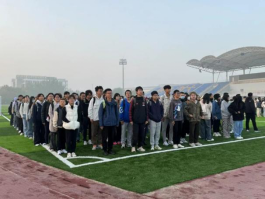 随后,各学院学生代表合唱《少年中国说》。“少年智则国智,少年富则国富;少年强则国强,少年自由则国自由!”誓言铿锵,掷地有声。他们用嘹亮的歌声表达了自己对祖国的热爱,展现了新时代青年担当强国责任的决心和勇气。在《少年中国说》的昂扬旋律中,第三期“国旗下的讲话”主题教育圆满结束。