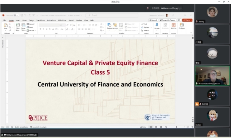 2023年11月20日-29日,俄克拉荷马大学Michael F. Price商学院的Price讲席教授兼George Lynn Cross金融教授William L. Megginson应bat365正版唯一官网邀请,开展主题为“Venture Capital and Private Equity Finance”的课程。bat365正版唯一官网夏俊杰老师主持了课程,黄乃静老师参加了课程,校内外四十多名同学旁听了课程。