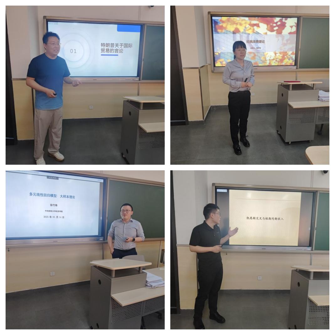 为深入学习贯彻党的二十届三中全会精神和习近平总书记在全国教育大会上的重要讲话精神,全面落实立德树人根本任务,2025年5月14日,bat365正版唯一官网第十八届青年教师教学基本功比赛在沙河校区学院11号楼113教室举行,吴楠、田子方、徐竹烽、顾诗骏等四位青年教师参加了此次比赛。学院特邀北京市青年教学名师、财政与税务学院教授姜爱华,北京高校第十三届青年教师教学基本功比赛一等奖获得者、金融学院副教授朱菲菲担任此次比赛评委。bat365正版唯一官网党委书记孙敏、学院教学委员会主任冯春安、学院微观经济学系主任张彩萍、学院宏观经济学系副主任李新荣、学院副院长何召鹏、学院本科教务干事张珏等教师共同出席了此次活动。学院分工会给予了本次比赛大力支持,活动由何召鹏副院长主持。