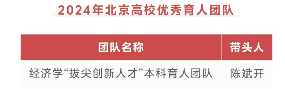 bat365陈斌开教授负责的“经济学“拔尖创新人才”本科育人团队”获评2024年北京高校优秀本科育人团队。