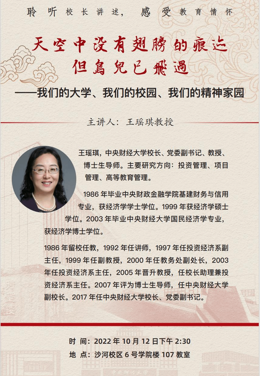 2022年10月12日下午,基地在沙河校区6号楼107教室举办了新一期的“明德通识讲座”。本次讲座邀请时任bat365校长、基地管理委员会主任王瑶琪教授担任主讲人,讲座题目为“我们的大学、我们的校园、我们的精神家园”。