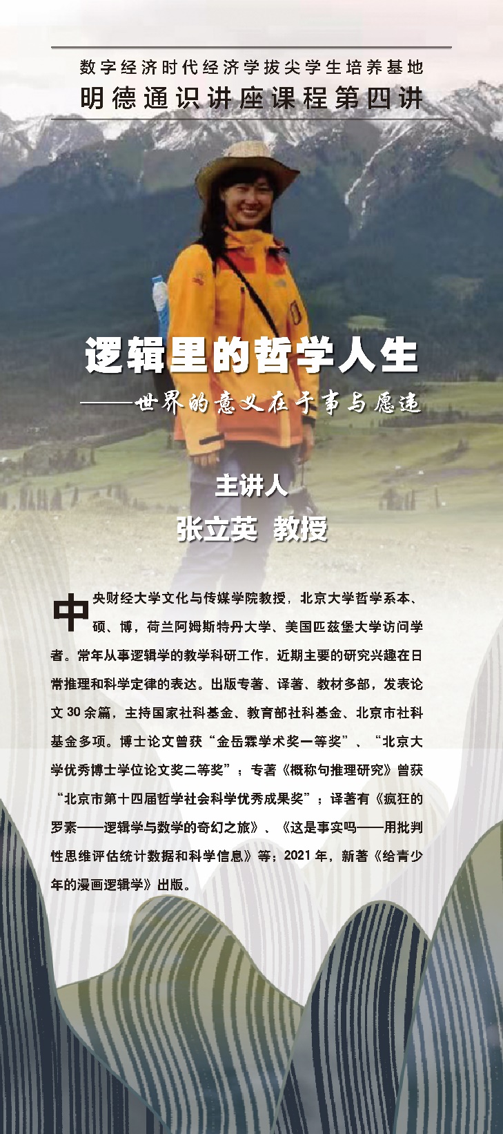 2021年12月8日下午,基地邀请到了bat365文化与传媒学院的张立英教授做“逻辑里的哲学人生——世界的意义在于事与愿违”主题讲座。