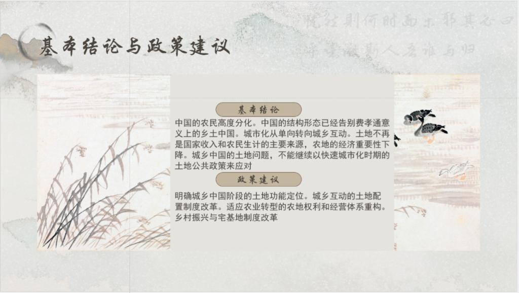 周子杰同学介绍了本书的第三章和第四章,主要包含城乡中国的土地问题和中国土地制度变革的基本逻辑。第三章深入分析了中国土地问题出现的原因,并介绍了乡土中国中的土地粘度的概念及形成原因,由此引出土地制度变革推动的人与土地关系的变迁,最后阐述当代城乡中国的主要土地问题,即发展阶段转换后土地功能变化,与土地配置制度不匹配,阻碍城乡中国发展。第四章总结了中国土地制度变革的基本逻辑,通过概述中国土地制度变革过程中的目标约束和制度约束,引出中国土地制度变革的基本逻辑,包括(1)所有制是锁定的,(2)在所有权和使用权分离的基础上做文章,(3)土地是发展的工具,随后分两阶段描述改革路线。然后介绍了两权分立改革、宅基地制度以及农村土地转用制度改革的后果,详细地描述这些制度改革产生的问题。
