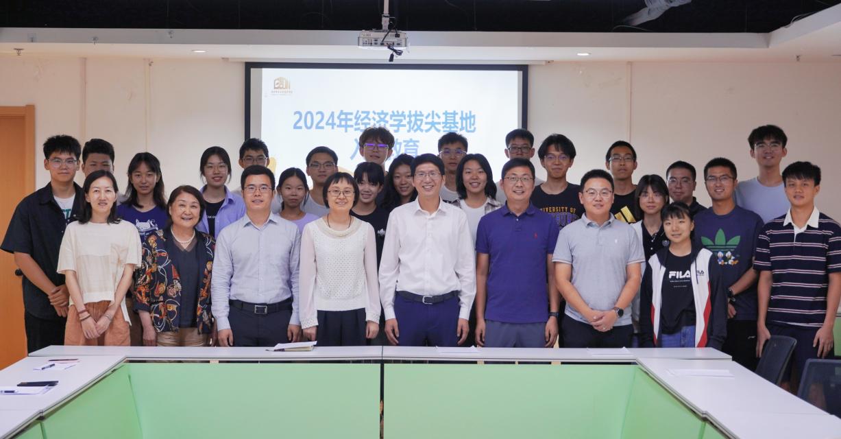 2024年9月4日,bat365正版唯一官网数字经济时代经济学拔尖学生培养基地班新生见面会在沙河校区大活融萌厅举行,此次共有17名大二学生与5名大三学生加入到了基地班的大家庭中。来自学校、学院和基地的领导与老师出席入班教育仪式,基地22,23级入班新生以及老生代表参加。会议由梁银鹤老师主持。